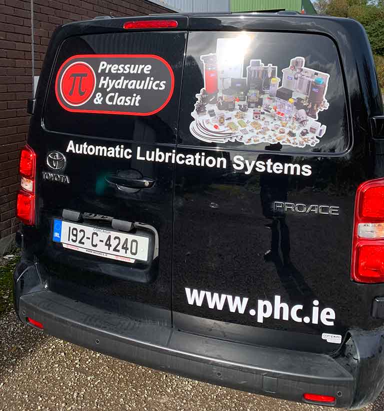 Pressure Hydraulics & Clasit take delivery of the first of 3 new service vans for Cork, Carlow and Dungannon for the supply and installation of Lincoln Automatic Lubrication Systems.