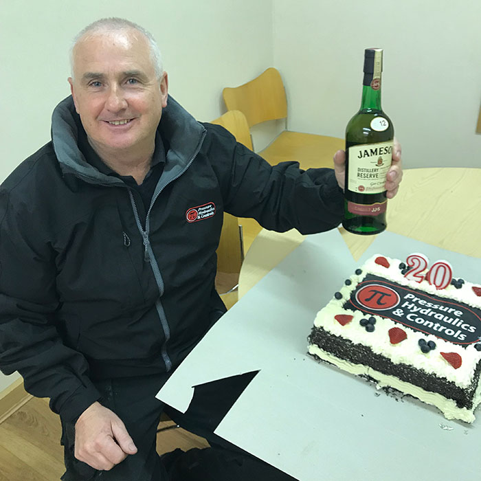 Today we are delighted to announce that Ger Cronin (Blue) our Cork facility Workshop Manager is celebrating 20 years with Pressure Hydraulics & Controls.